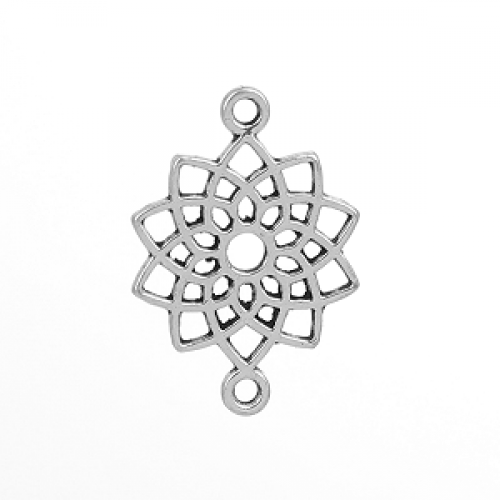 Zilveren metalen Connector/ Tussenstuk - Flower of Life afmeting: 20 x 14 mm - gaten 1.2 mm per stuk - nikkelvrij