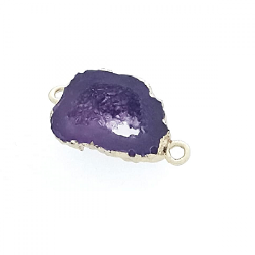 Tussenstuk Druzy Metaal goud Paars Steen Resin gegoten afmeting: 35x15mm rijggaten 1.3 mm nikkelvrij - per stuk