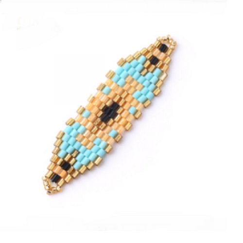 Tussenstuk - bedel 2ogen handgemaakt Miyuki kleuren: Goud / Bruin /Turkoos afmeting: 50x15mm - rijggaten 2mm