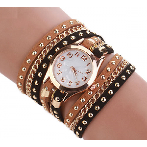 Goud metalen horloge met pu-suede band in de kleur: Bruin/Zwart